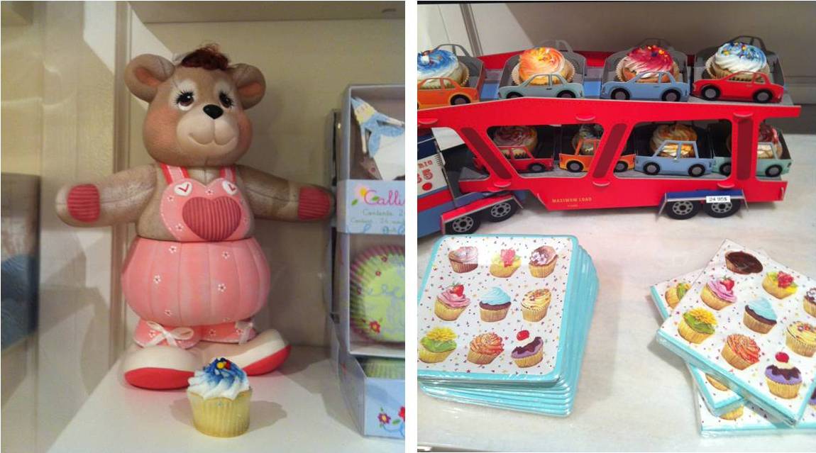 Il n’y a pas seulement des cupcakes à cet endroit..non,non,non, il y a aussi une panoplie d’accessoires de décoration à cupcake, des bijoux et des aimants en forme de cupcakes ainsi qu’ un mur complet de thé.