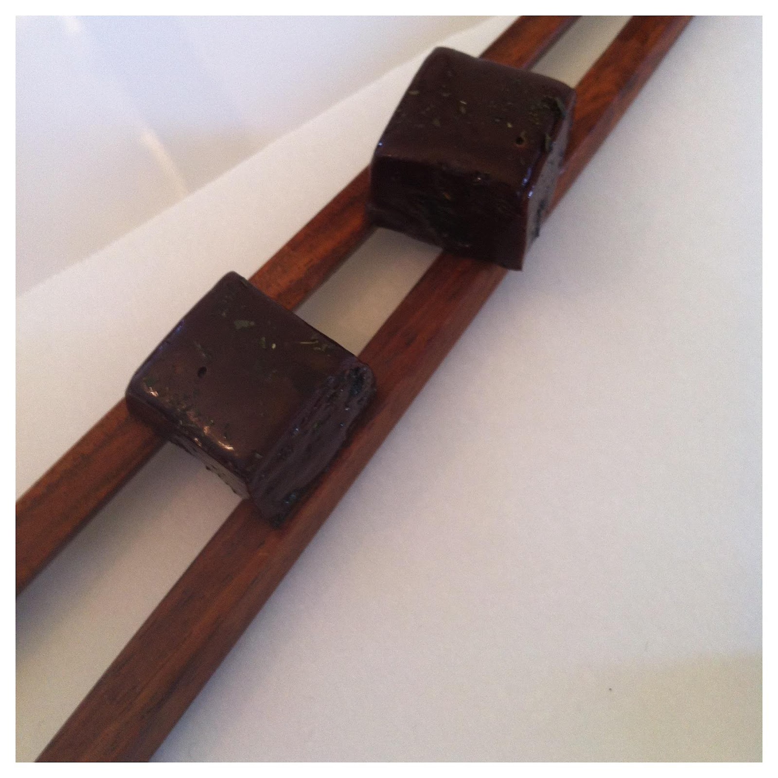 La finale en bouche de ce caramel nous permet de bien goûter le thé vert japonais. La présence des feuilles nous amène une texture intéressante.